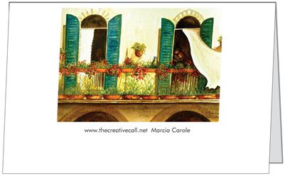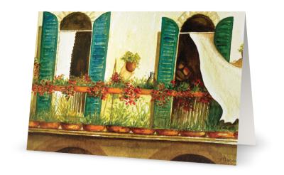 A friend has ordered a set of these cards in the midst of the rush for “Christmas” Monday Cyber-deals. How refreshing to order art reflective of my journeys to relaxed, beautiful Italia. I like to say to friends, especially when I am about to return to Italy, “The Italians already had their time of conquering everything – the known Western world, so now they are into good food, good wine, good conversation and amazing art.” These cards remind me of lazy afternoons when I was loli-gagging around beautiful, peaceful Lucca, Italy. That’s where the original was painted.