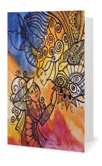 Glad you made it to Art Engaging Story! Please see my mehndi style Christmas Cards below. These were made using my original art. They are 5 inches by 7 inches, and they come in sets of 10. So, order 10 cards for a donation of $20, etc. You can donate here:http://thecreativecall.net/donate.php to support the work I do with women and children in extremely difficult and crisis situations. You will receive a year-end giving statement from CoLink, and your donations are tax-deductable.